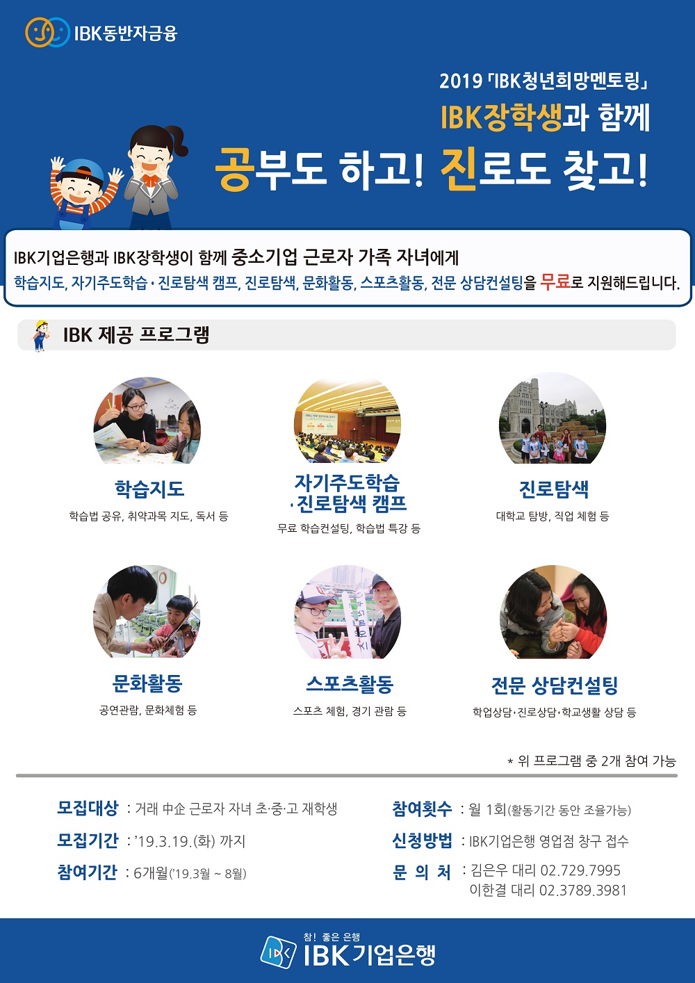 IBK 행복나눔재단 재단소개 재단소개 진정성 있는 나눔 실현을 위해 다양한 사회공헌 활동 수행 인사말 소개 연혁 이사진 조직구성 투명경영 재정보고 경영보고 규정 찾아오시는 길 주요사업 주요사업 진정성 있는 나눔 실현을 위해 다양한 사회공헌 활동 수행 IBK장학금 IBK치료비 IBK중소기업 공동직장어린이집 1호점(남동사랑) 2호점(구미사랑) IBK멘토링 IBK희망기부 IBK인재육성 프로젝트 IBK문화예술지원 IBK희망디자인 IBK희망나래 IBK다문화 사랑 IBK금융경제교육 IBK아이돌봄지원사업 기타사업 소식 소식 진정성 있는 나눔 실현을 위해 다양한 사회공헌 활동 수행 공지사항 언론보도 자료실 자료실 진정성 있는 나눔 실현을 위해 다양한 사회공헌 활동 수행 영상 사진 서식자료 FAQ 감사인사 감사인사 진정성 있는 나눔 실현을 위해 다양한 사회공헌 활동 수행 감사인사 로그인 | 회원가입 카테고리 서식자료 IBK행복나눔재단 서식자료를 안내해드립니다. H 자료실 재단소개 주요사업 소식 자료실 감사인사 서식자료 영상 사진 서식자료 FAQ 2019 IBK청년희망멘토링 지원신청서 및 동의서(멘티용) 2019-03-12 관리자 조회수 : 802 이전글 IBK 청년희망 멘토링 활동보고서(취업성공그룹 멘토용) 다음글 2019년 하반기 장학금 신청서 목록 비밀번호확인 * 확인