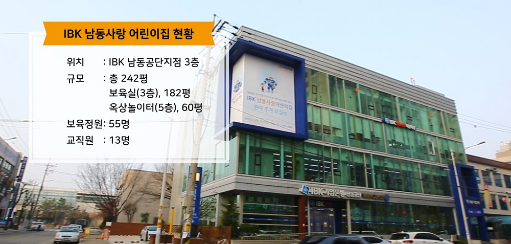 IBK 남동공단지점 공간을 활용한 금융권 최초의 중소기업 근로자 전용 공동직장어린이집을 개원하였습니다.