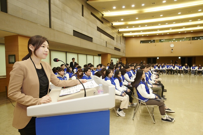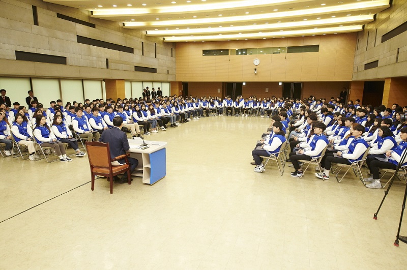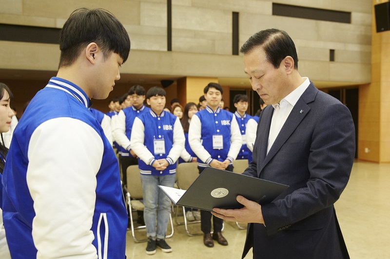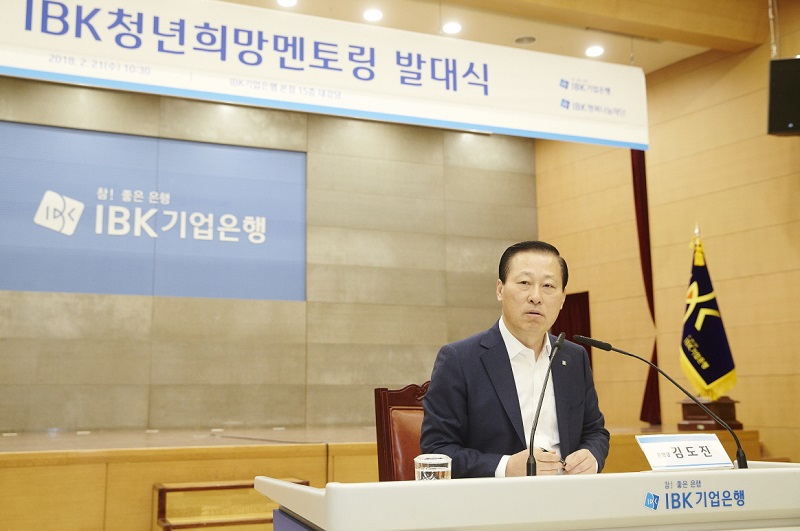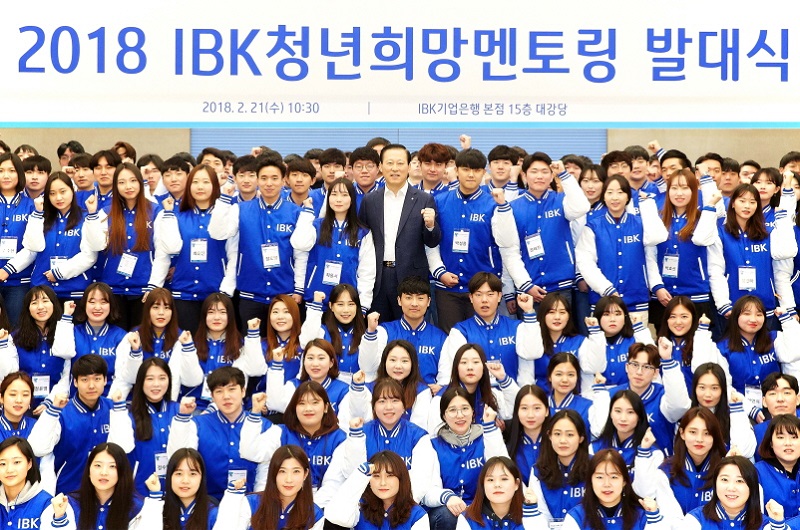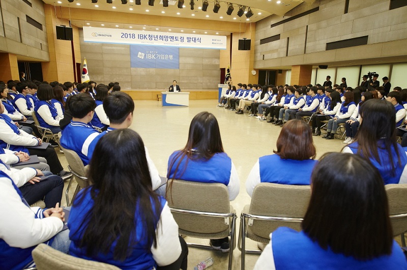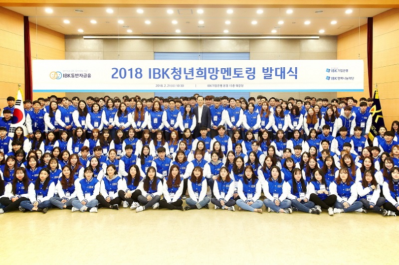 IBK 장학생이 중소기업 근로자 자녀에게 10개월 동안 학습 멘토링을 진행하는 2018 IBK 청년희망멘토링이 발대식을 가지고 첫 발걸음을 내딛었다. 발대식에는 IBK기업은행 김도진 은행장이 참석하여 IBK 장학생을 격려해주었다.