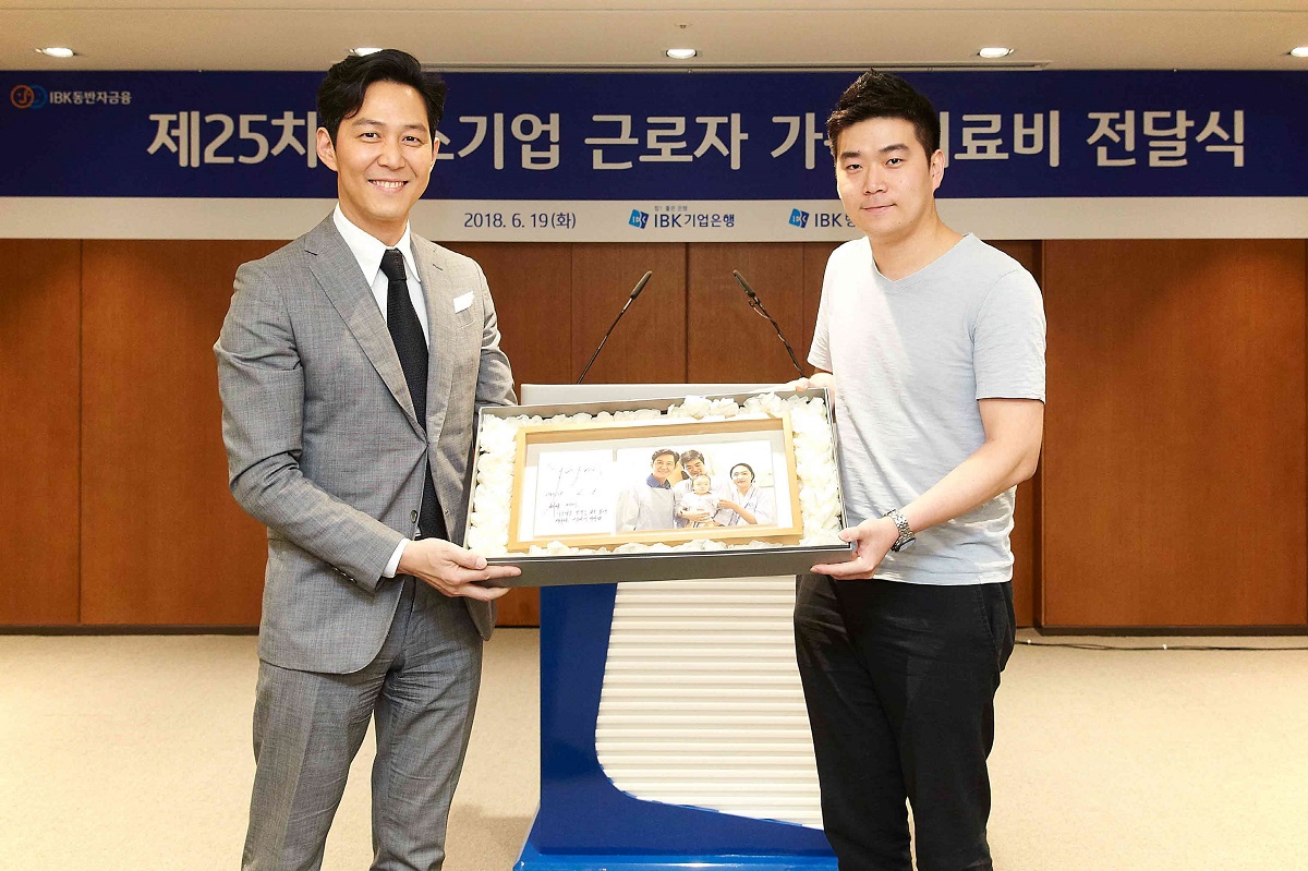 특히, IBK기업은행 광고모델 이정재씨가 전달식에 참석하여 직접 환자가족을 만나고 투병중인 환자가족에게 기념사인액자를 선물로 전달하였습니다.