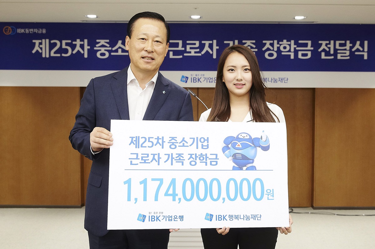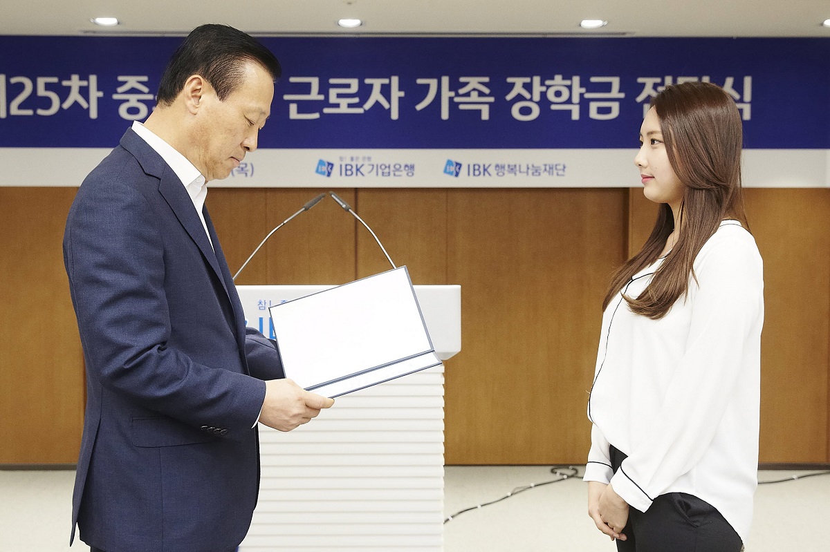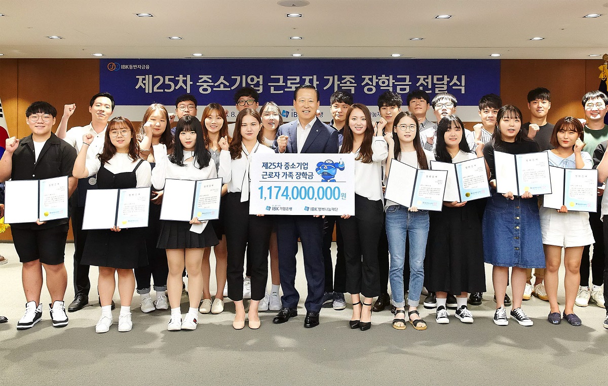 IBK장학생은 학업성적과 학습의지가 우수한 중소기업 근로자의 대학생, 고등학생 자녀들과 IBK청년희망멘토링에서 중소기업 근로자 자녀들의 학습멘토로 봉사활동을 하고 있는 대학생들입니다.