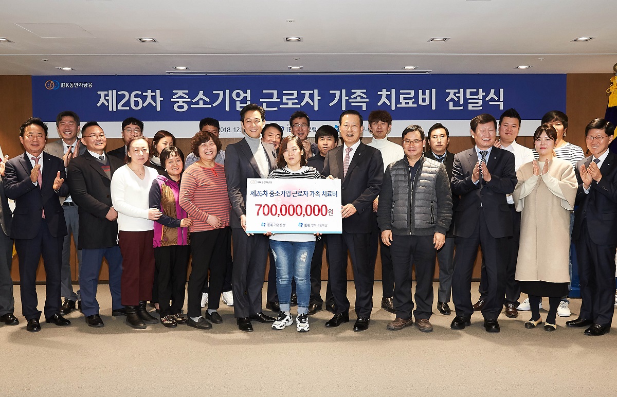 2018.12.14.(금) 기업은행 본점에서 중소기업 근로자 가족 치료비 전달식을 개최하였습니다.