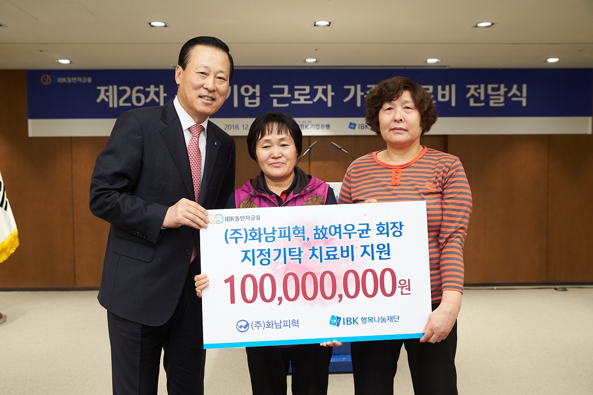 (주)화남피혁 여승태 대표는 올해로 4번째 지정기탁기부금 1억원을 후원하며 IBK기업은행과 함께 우리 사회 도움의 손길이 필요한 이웃에게 따뜻한 온정을 전달식을 통해 함께 나누었습니다.