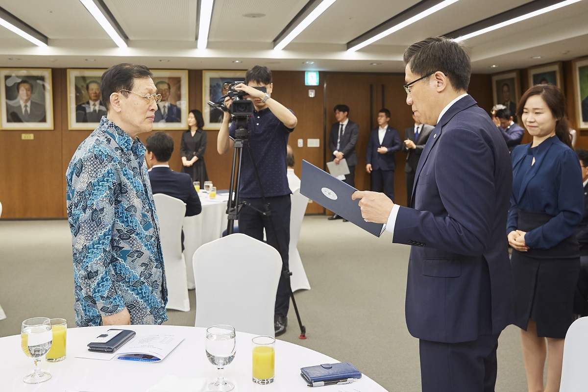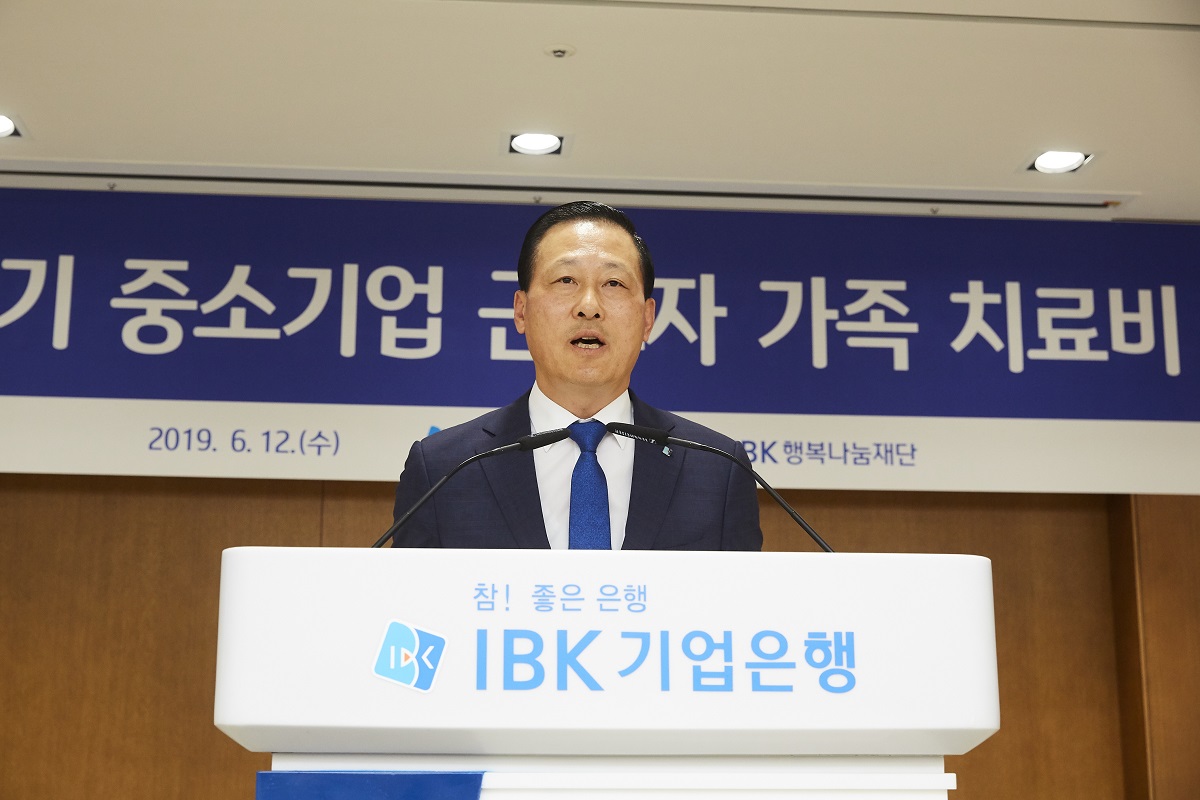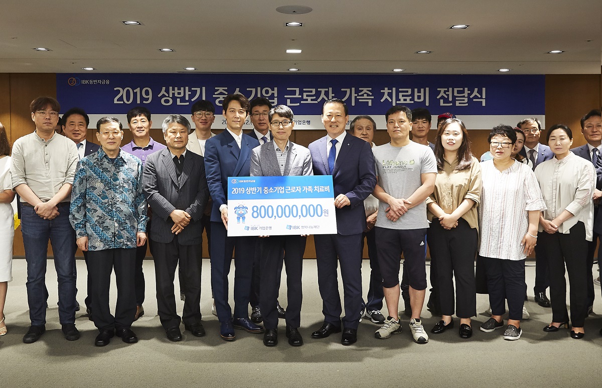 2019년 6월 12일 (수) 10시30분 기업은행 본점 10층 대회의실에서 제27차 중소기업 근로자 가족 치료비 전달식을 개최하였습니다.