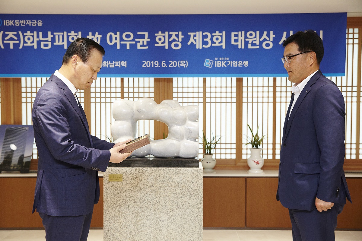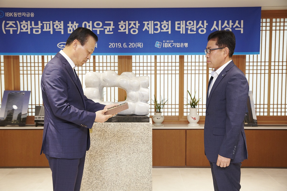 (주)화남피혁의 창업주이시며, IBK 명예의 전당 헌정자이신 故 여우균 회장님께서 중소기업 지원 부문에 공적이 있는 기업은행 직원에게 회장님의 호를 인용한 상패를