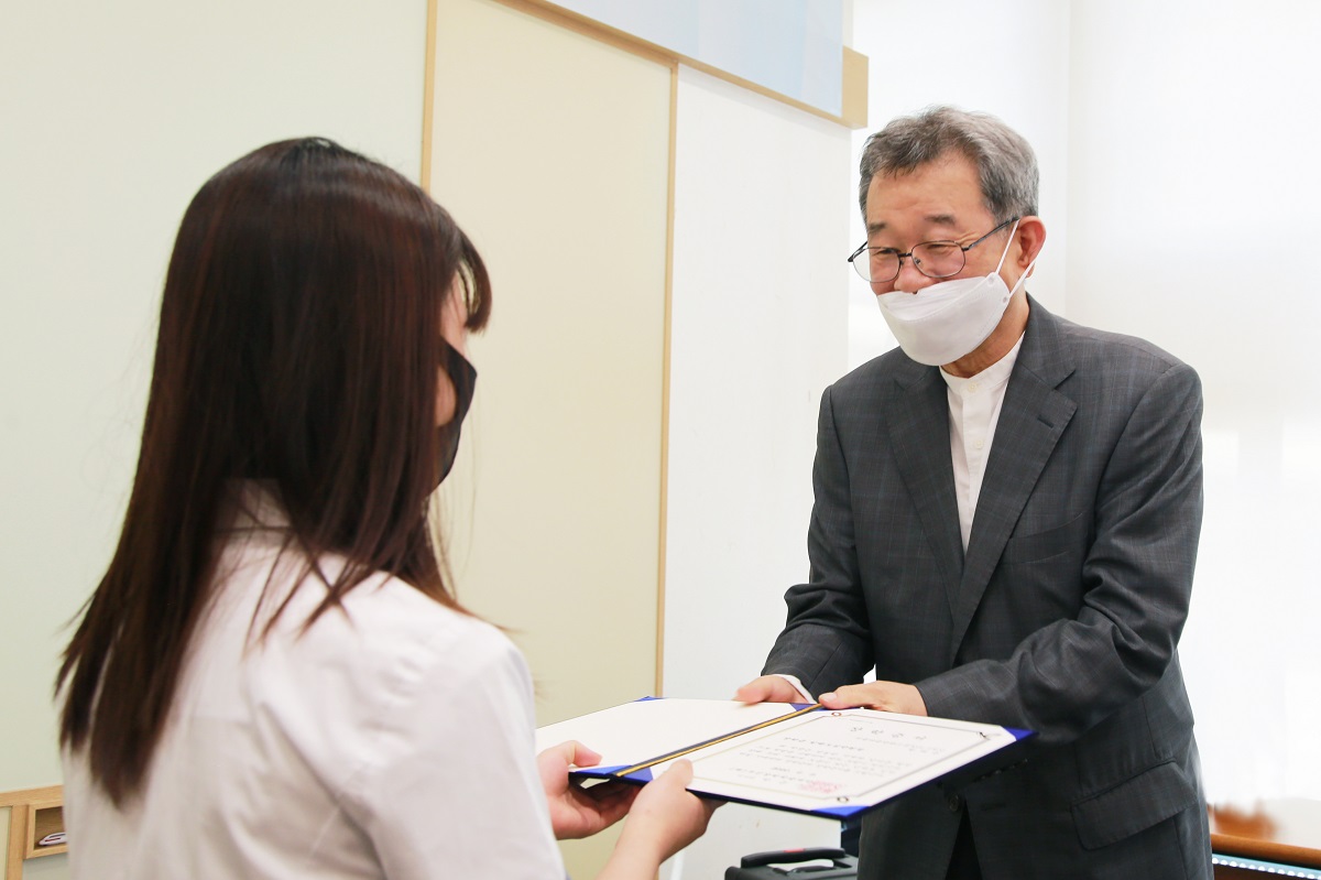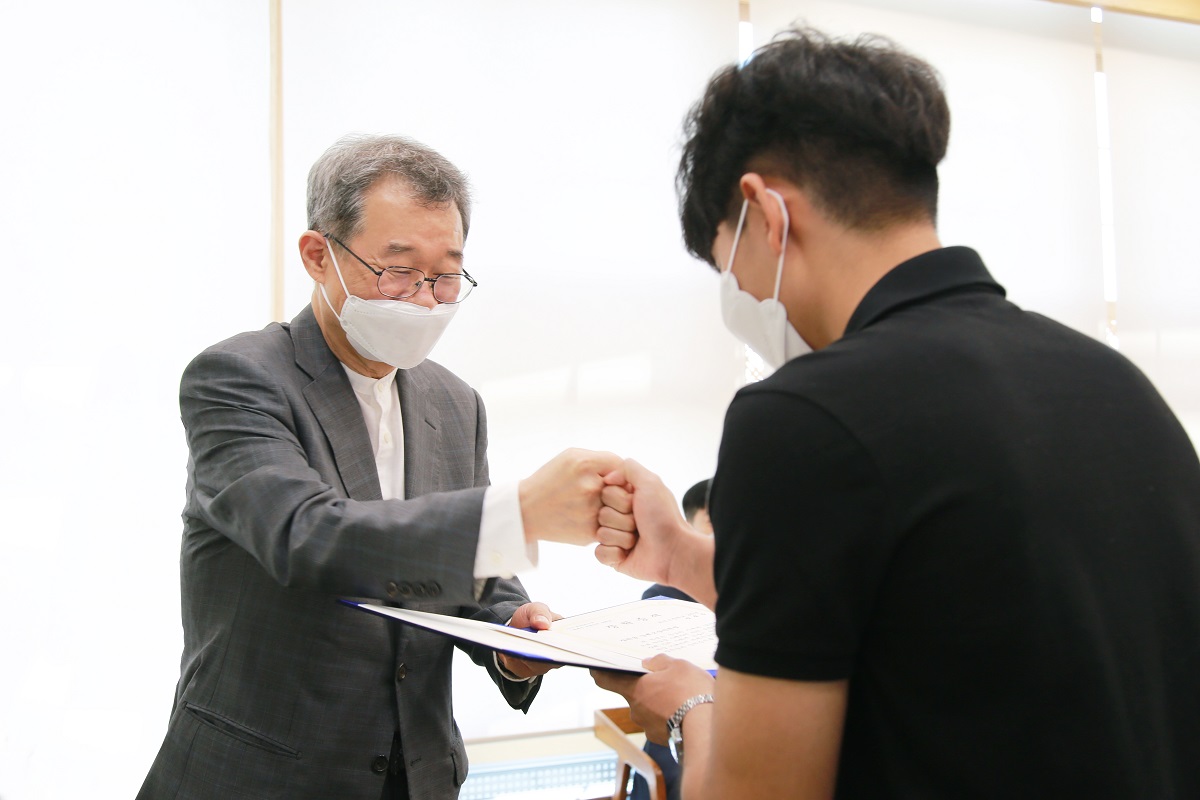 금차 지원에는 총 12명의 학생들이 선발되었으며 회장님께서는 고등학교 1학년 때부터 졸업때까지 지속적으로 장학금 지원을 약속 하셨습니다.