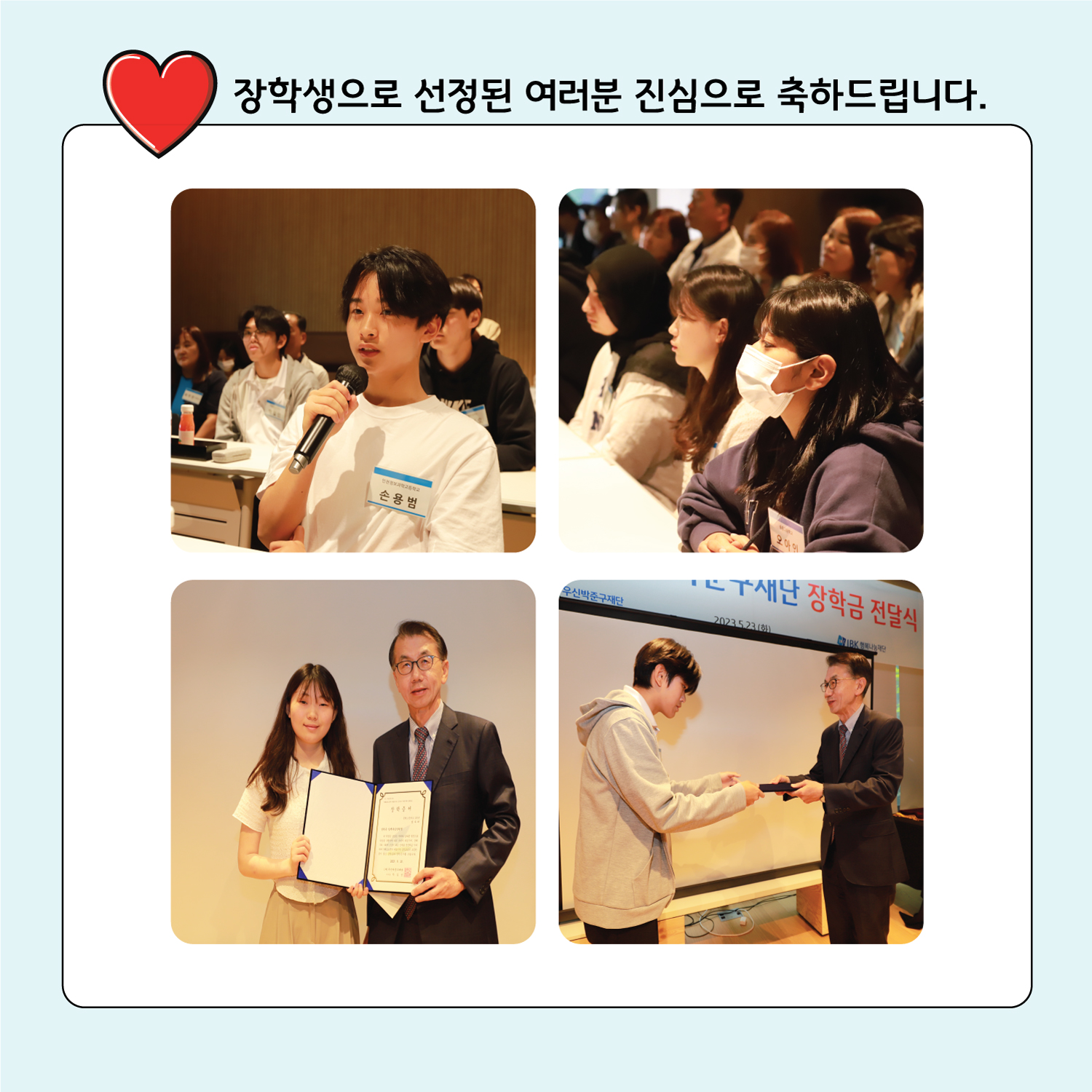 장학생들은 꿈과 당찬 포부를 밝혀주었습니다.