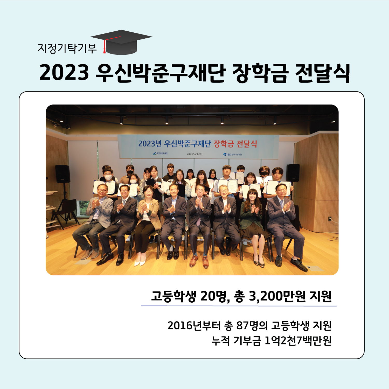 IBK지정기탁기부, 우신박준구재단 장학금 전달식