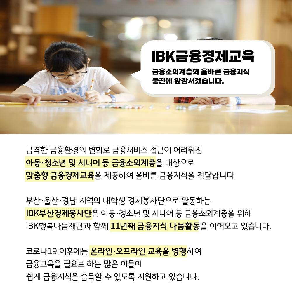 IBK행복나눔재단에서는 IBK멘토링과 IBK금융경제교육을 통해