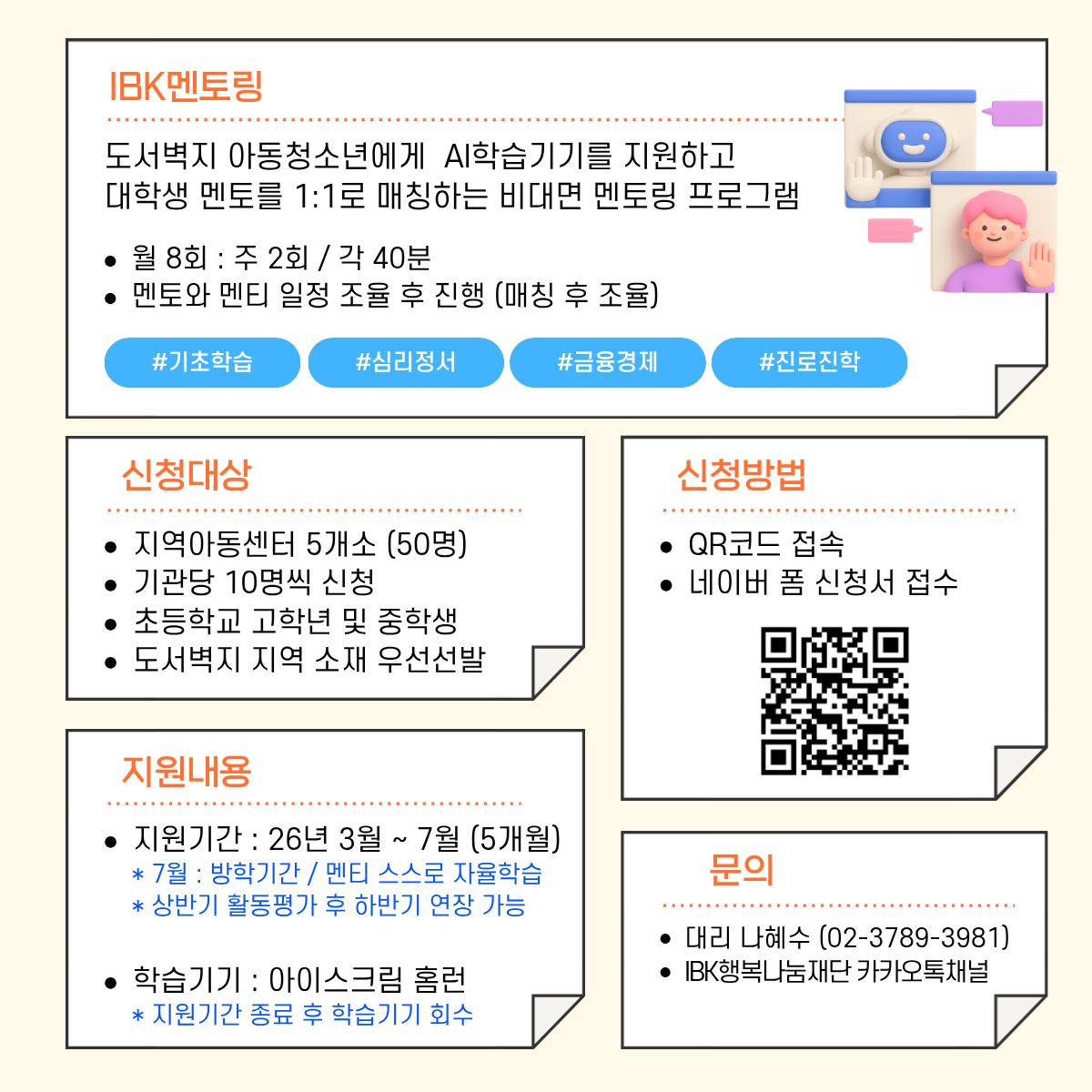 2026 상반기 IBK멘토링 '참여기관' 모집