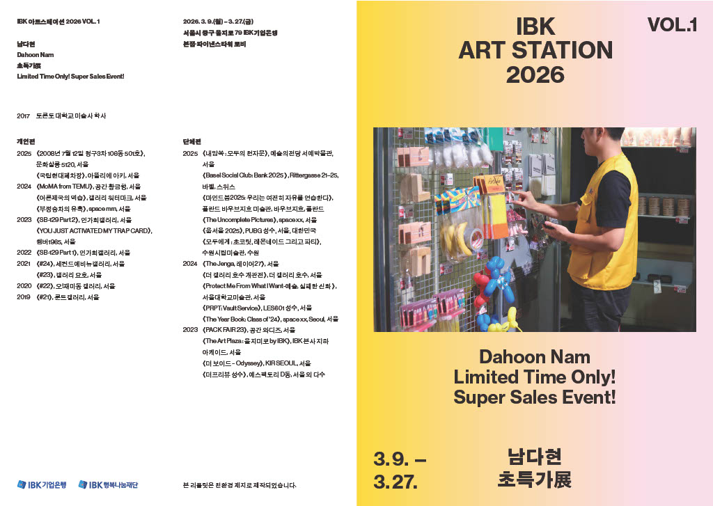 [IBK 아트 스테이션 2026] 남다현 작가의 초특가展